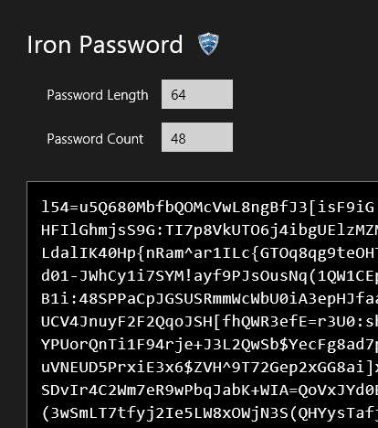 Iron Password is a security app specially developed for Windows 8, 8.1 and 10 users, capable of generating any number of complex passwords made from lowercase and uppercase letters, numbers, and symbols.